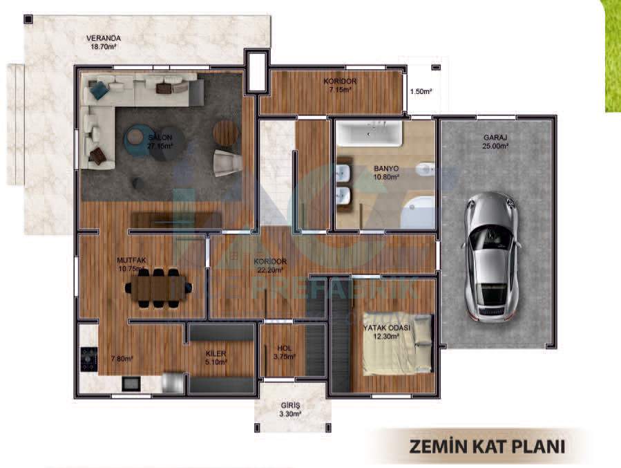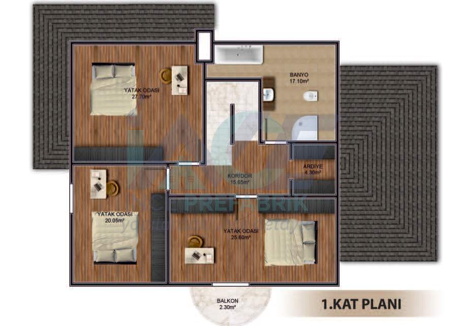 - Çatı Kaplaması Boyalı Galvaniz Saç, Metal Kiremit (Opsiyonel), Shingle (Opsiyonel)