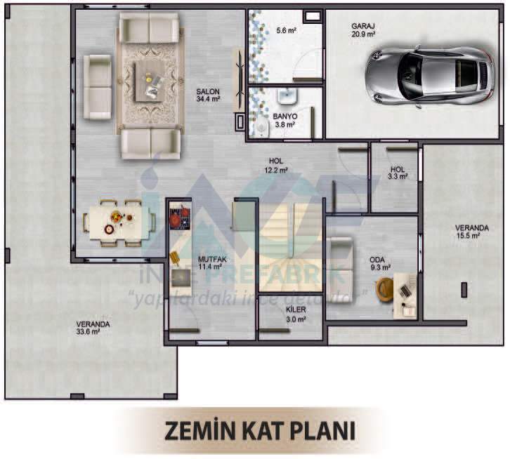 IC812 270m² 4+1 Çift Katlı Çelik Ev