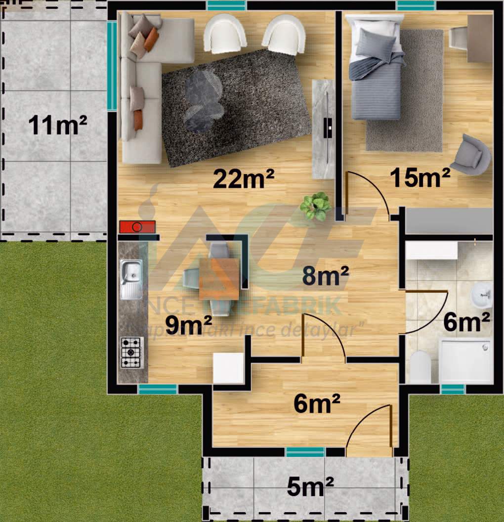 - Elektrik ve su armatürlerinin verilmesi dahildir.