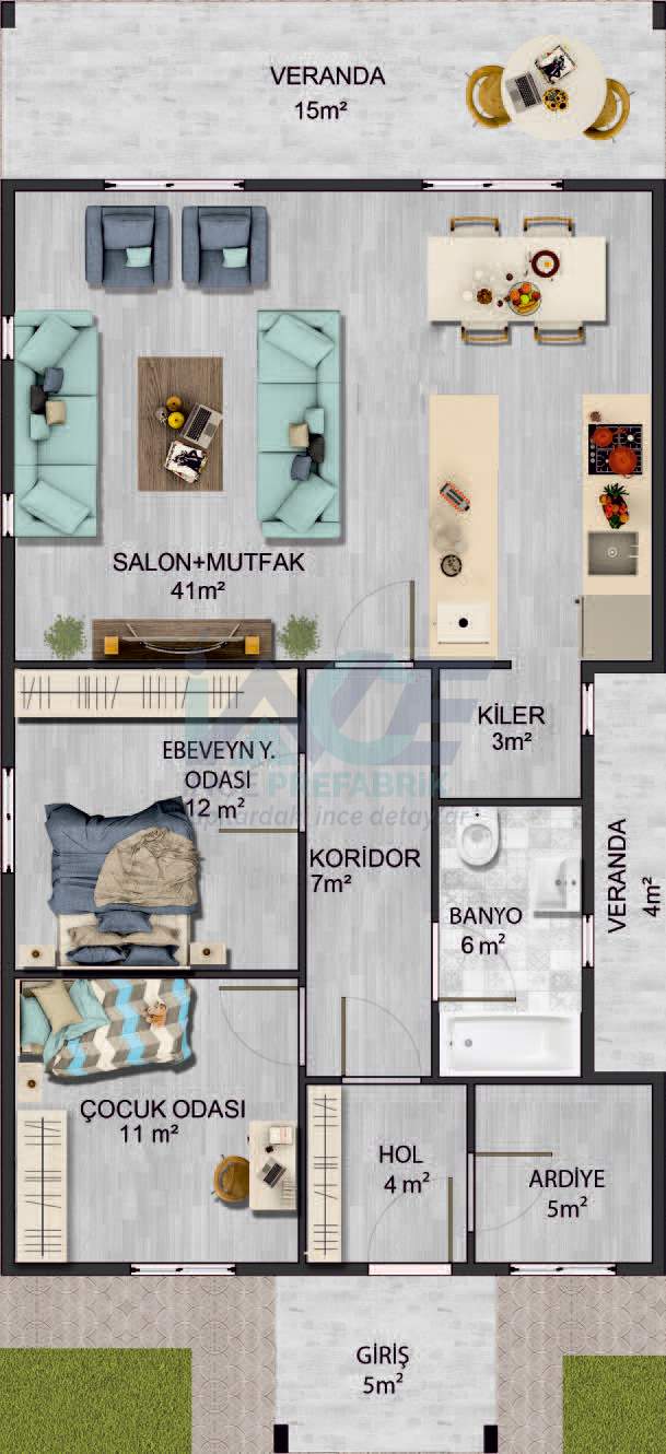 IC604 113m² 2+1 Tek Katlı Çelik Ev
