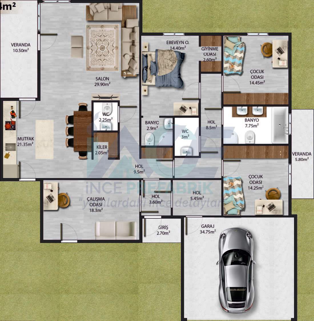 IC620 214m² 4+1 Tek Katlı Çelik Ev