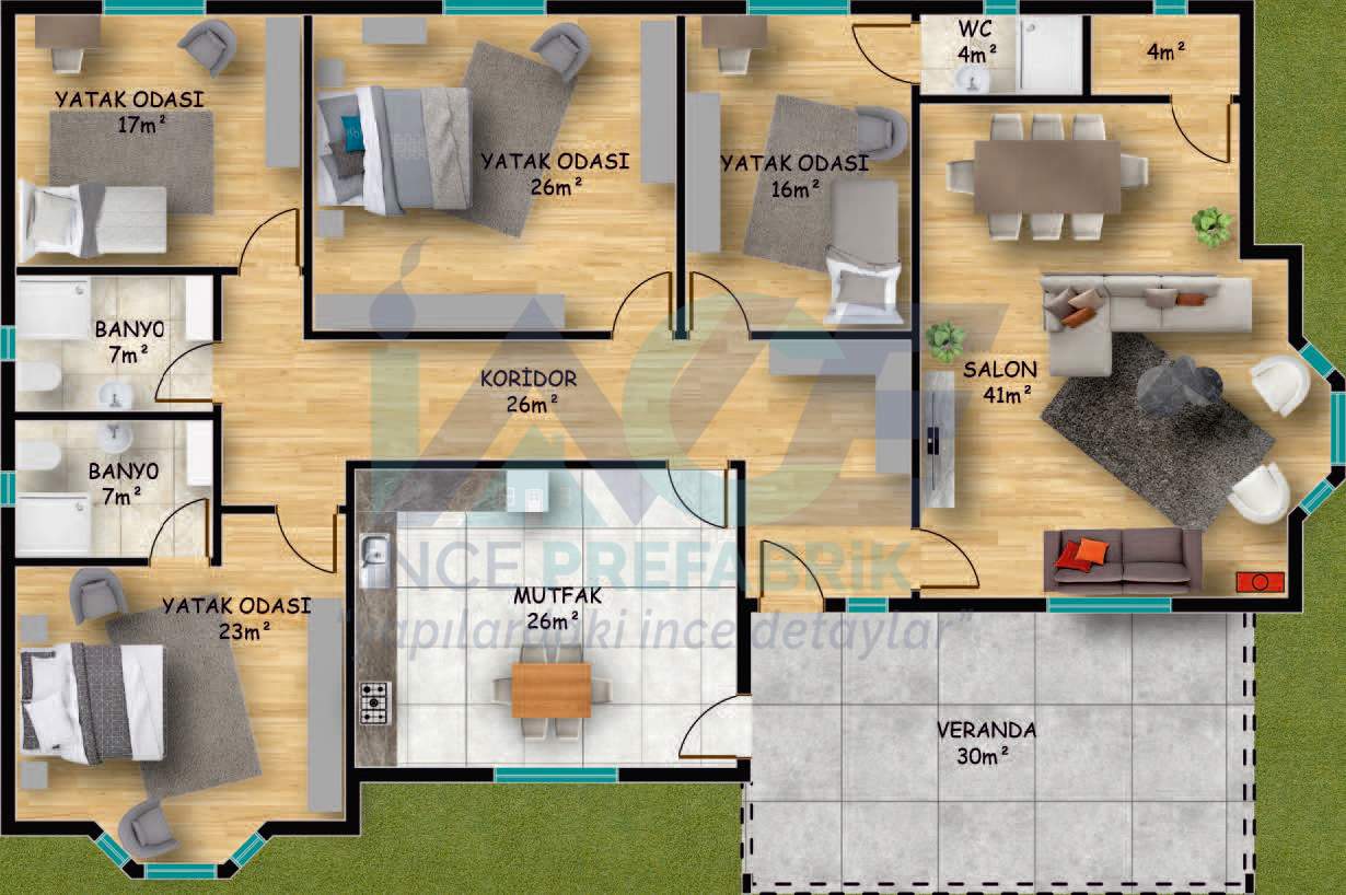 IC622 227m² 4+1 Tek Katlı Çelik Ev