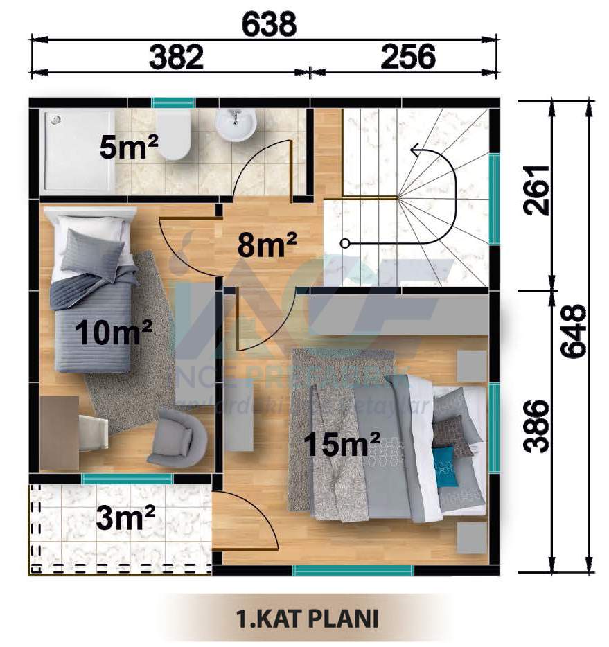IP200 82m² 2+1 Çift Katlı Prefabrik