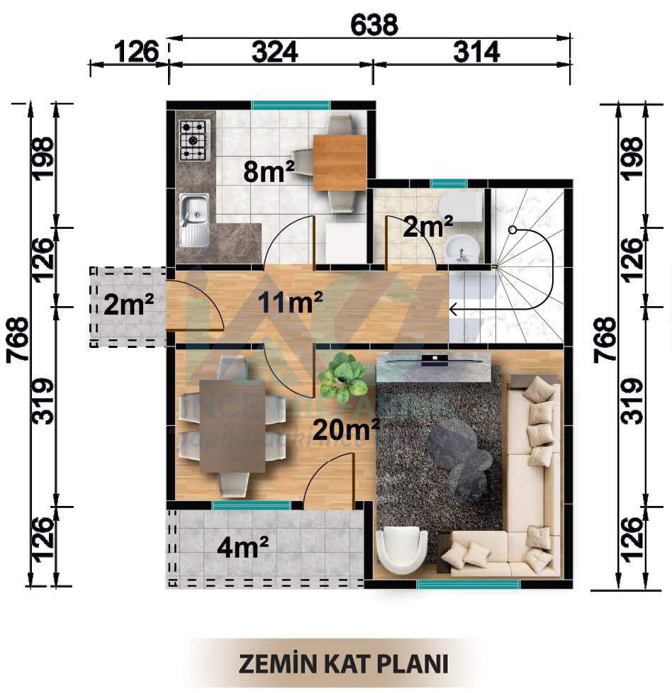 - Elektrik ve su armatürlerinin verilmesi dahildir.
