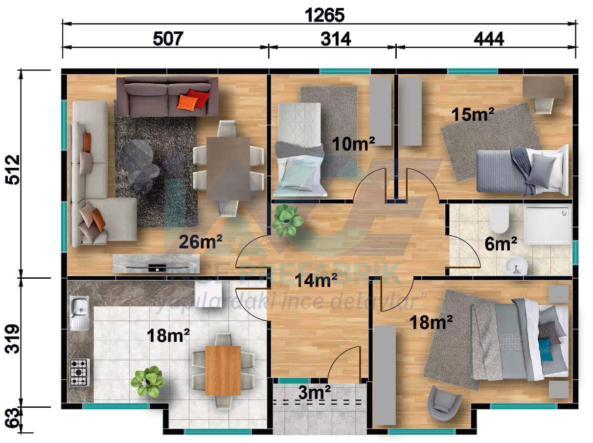 IP128 110m² 3+1 Tek Katlı Prefabrik