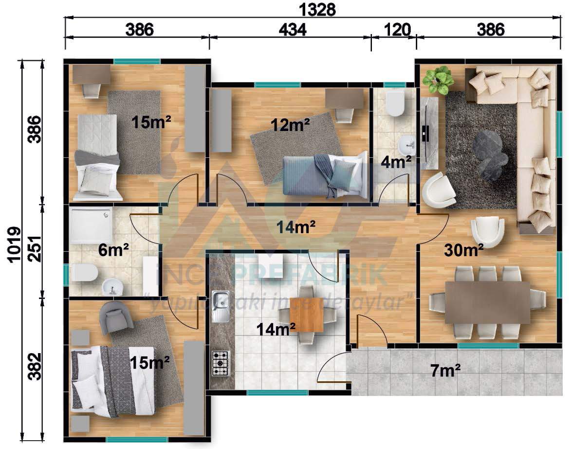 IP131 120m² 3+1 Tek Katlı Prefabrik