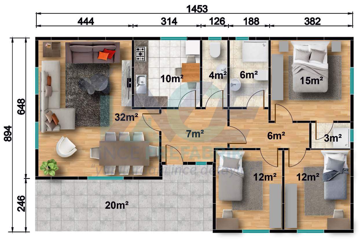 IP132 123m² 3+1 Tek Katlı Prefabrik